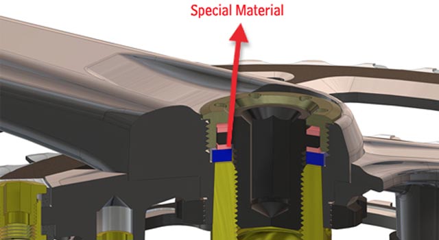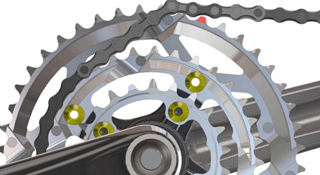 We've greatly improved the material of the spacer between screws and crankset . Adapting a special-chosen material as the spacer lessens the loosening degree between the screw and the crankset . Therefore, the loosening possibility is minimized, and the overall safety is secured.